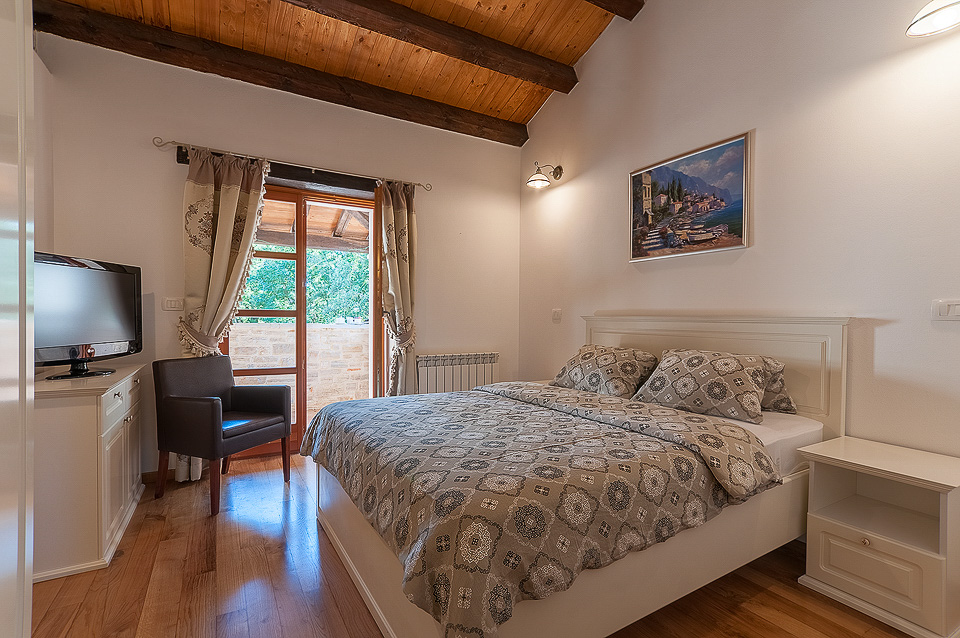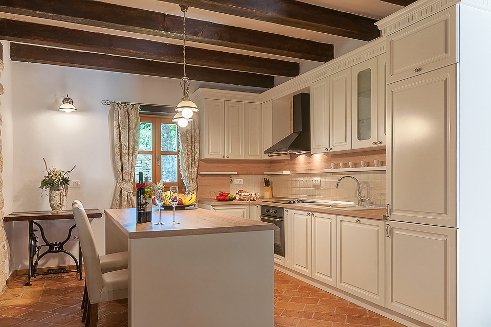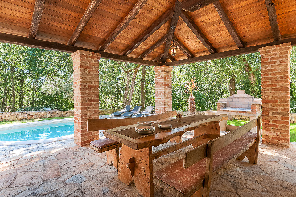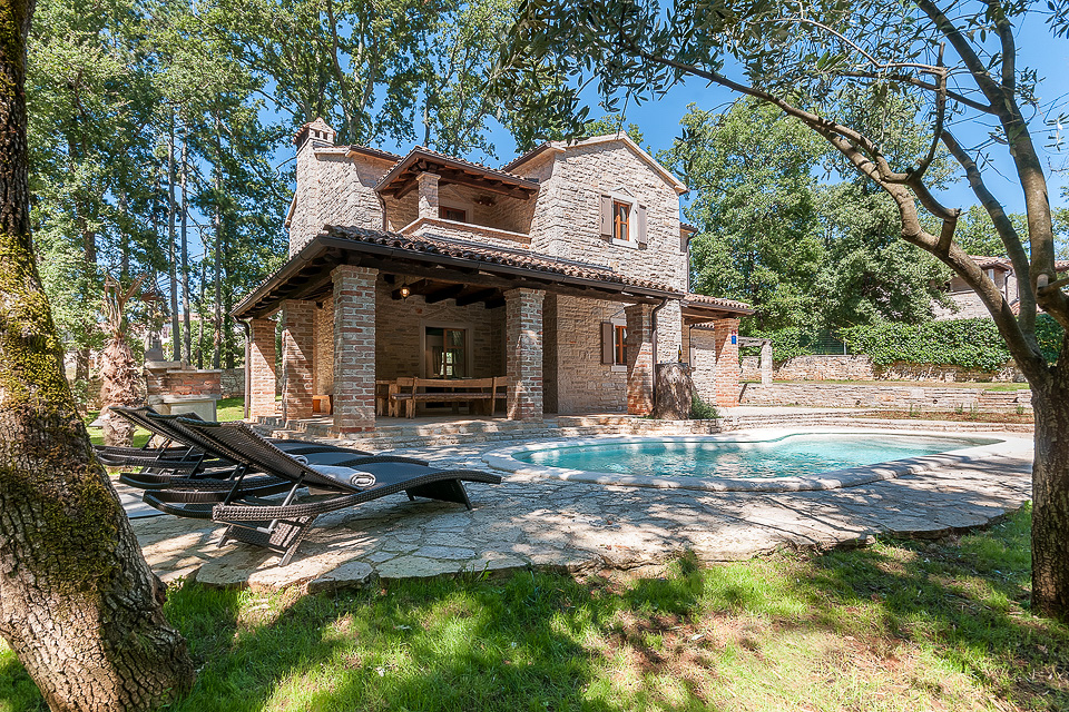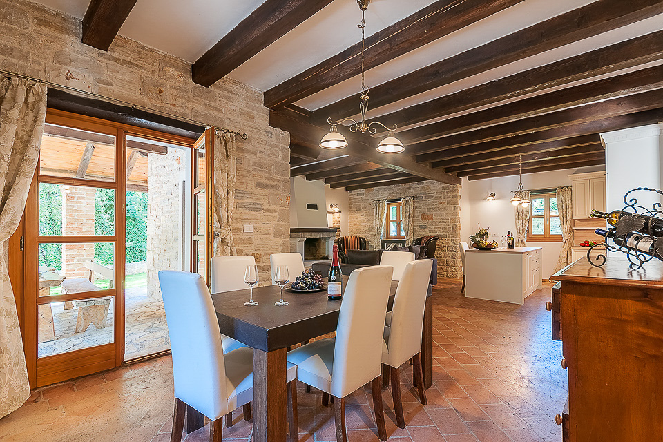 Die möblierte Steinhaus-Villa verfügt über eine Wohnfläche von ca. 180 m² und wurde in einem schönen mediterranen Stil in istrischen Architektur gebaut. Zahlreiche Details belegen den Aufwand der Architekten, wie zum Beispiel das leicht abfallende Dach und die von Steinrahmen eingefassten Fenster.