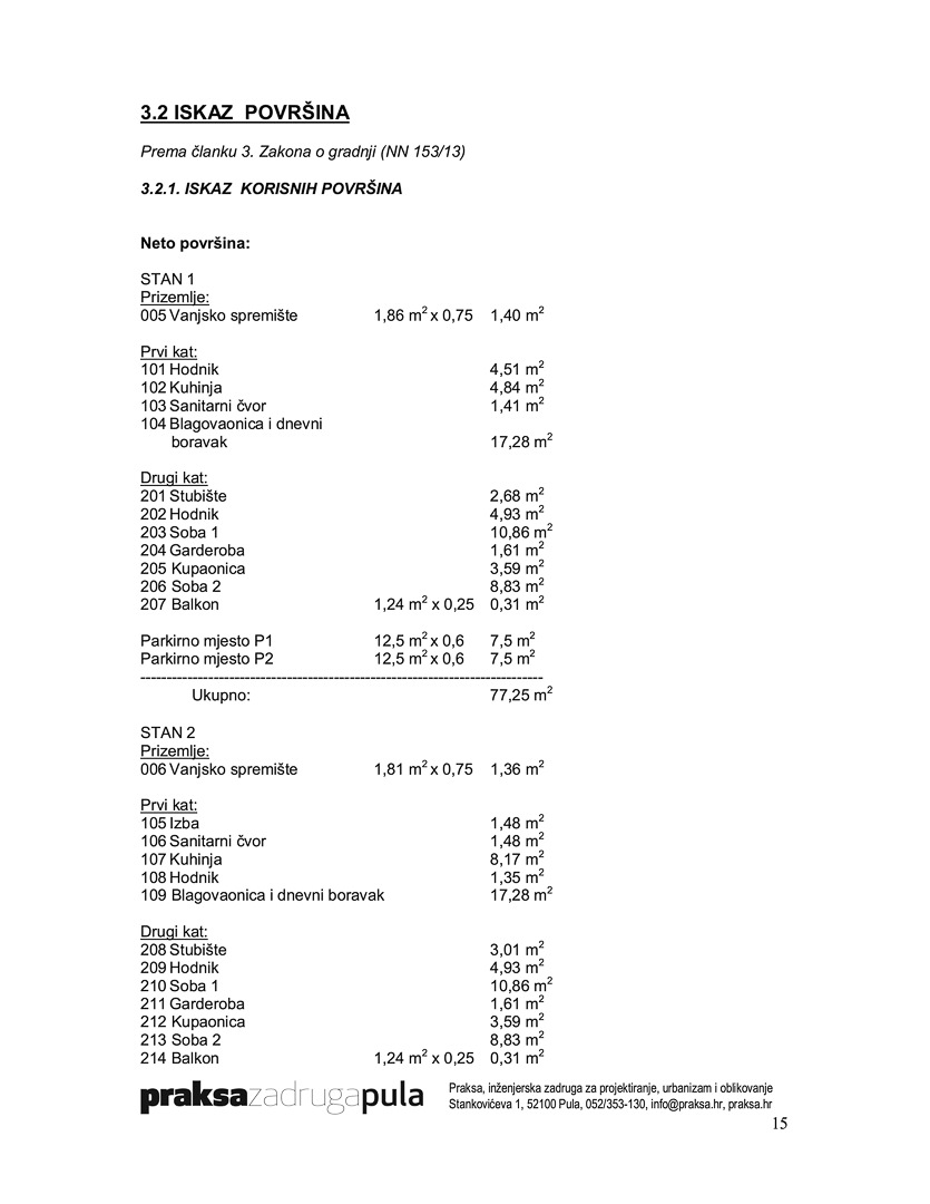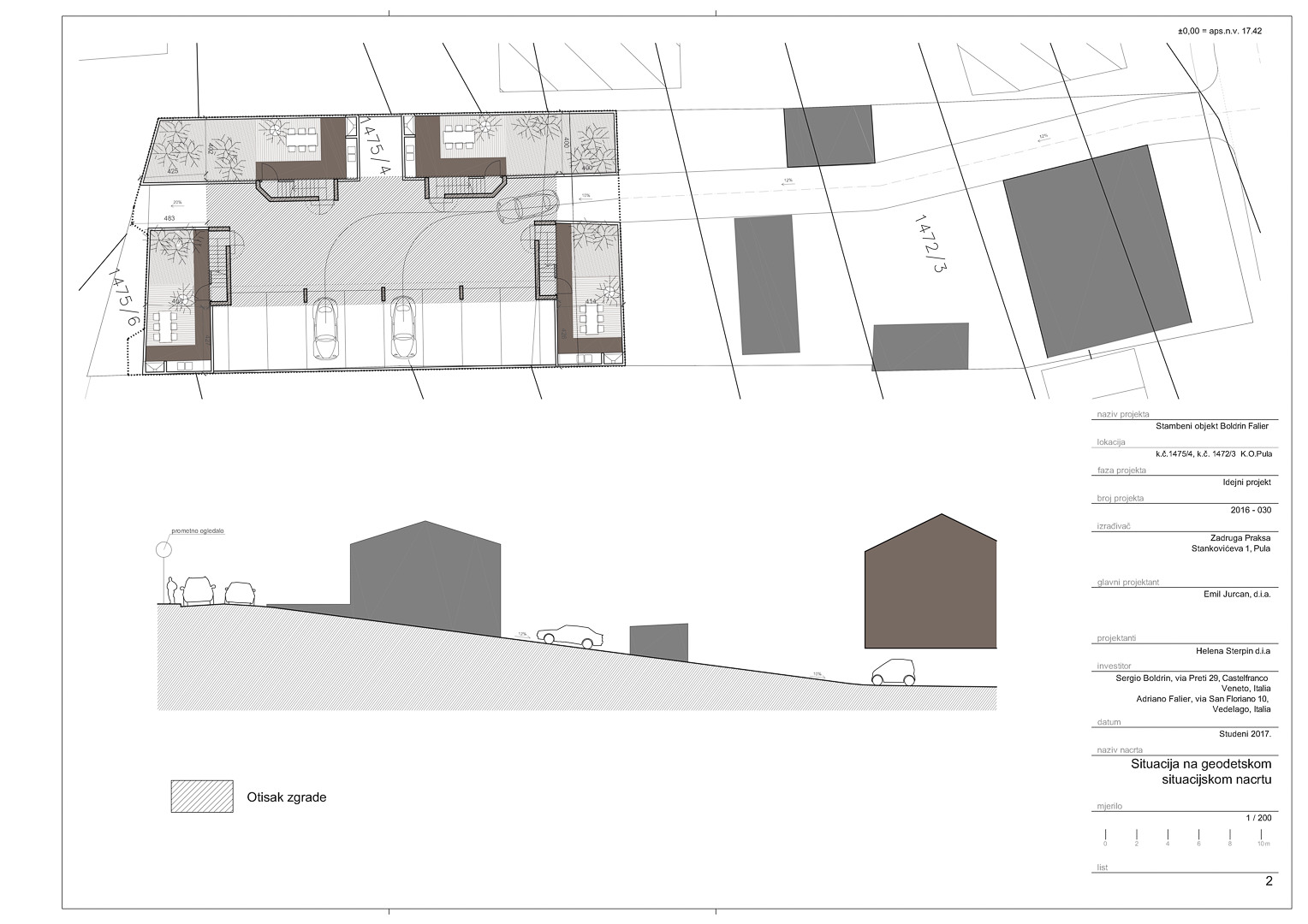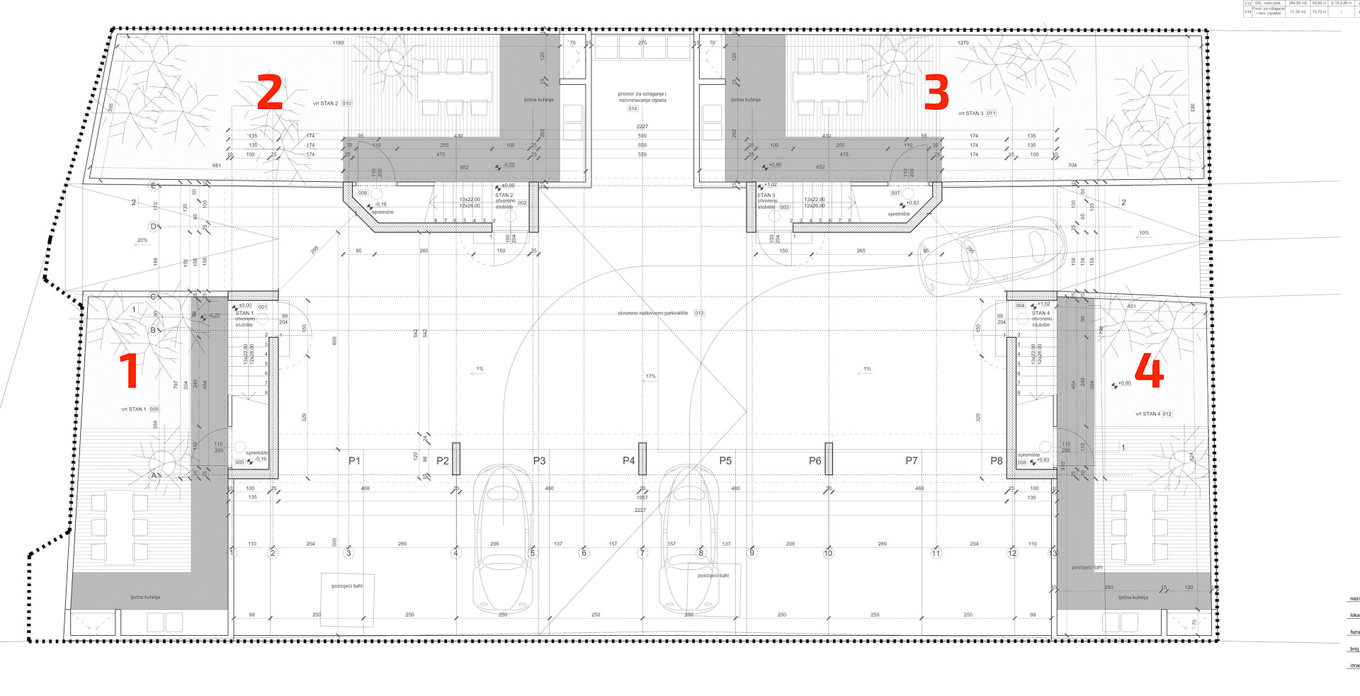 The alternative is an Apartment Building with 4 units of 76m2 each. The ground floor would be a parking and private garden area, while the first & second floor would be residential.