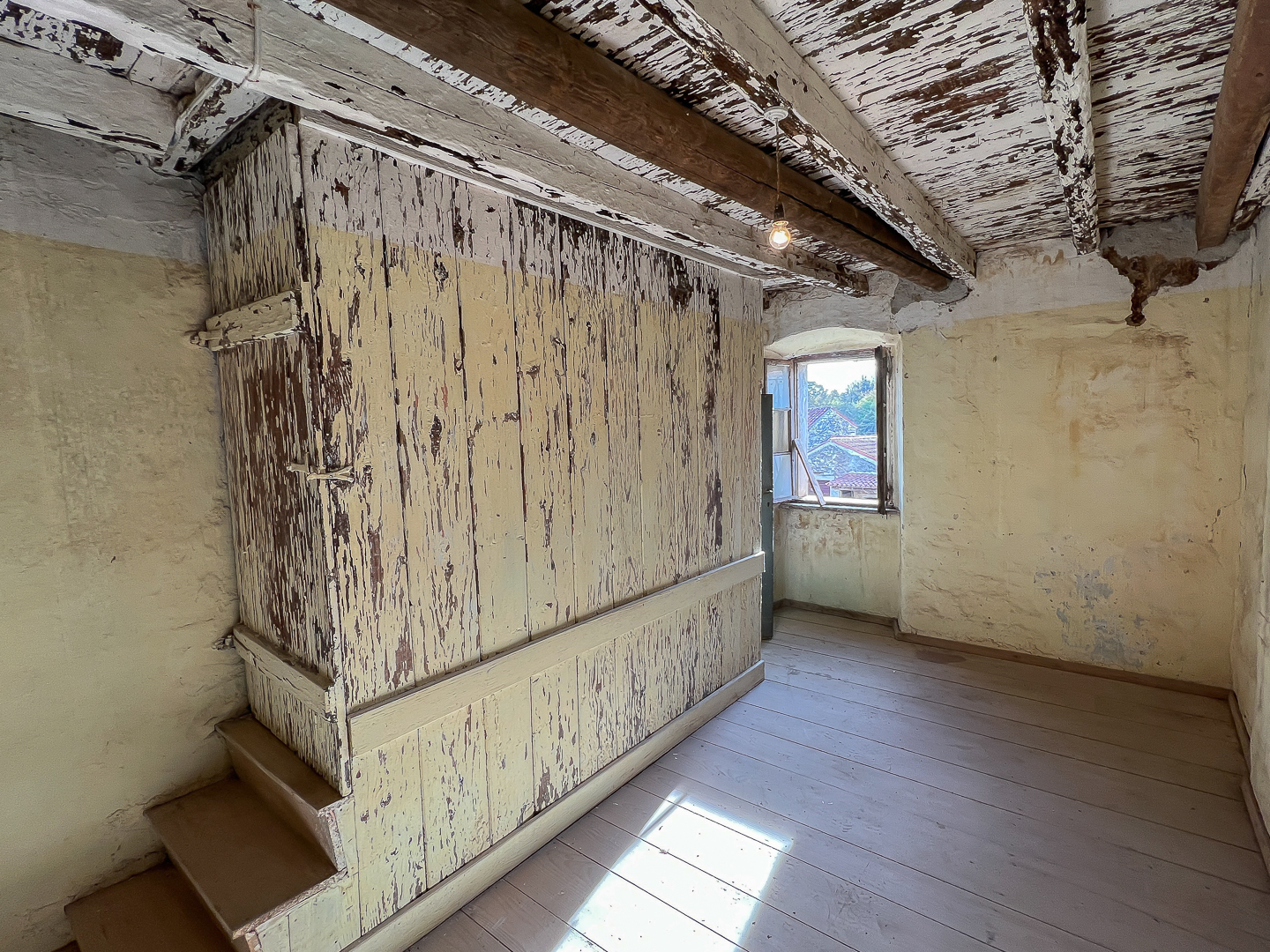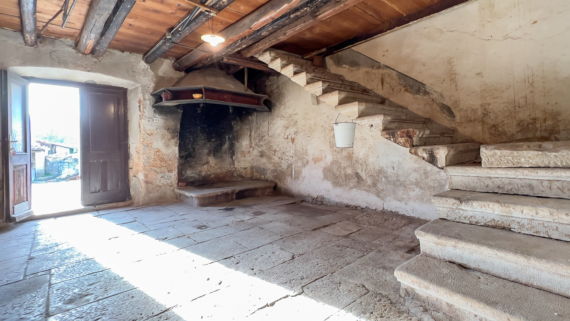 The preserved original stone staircase and fireplace in the main room give it that special charm. And since the fireplace served not only as a source of heat, but also as a center for social gatherings and a symbol of family unity - let it be an inspiration for creating your own tradition.