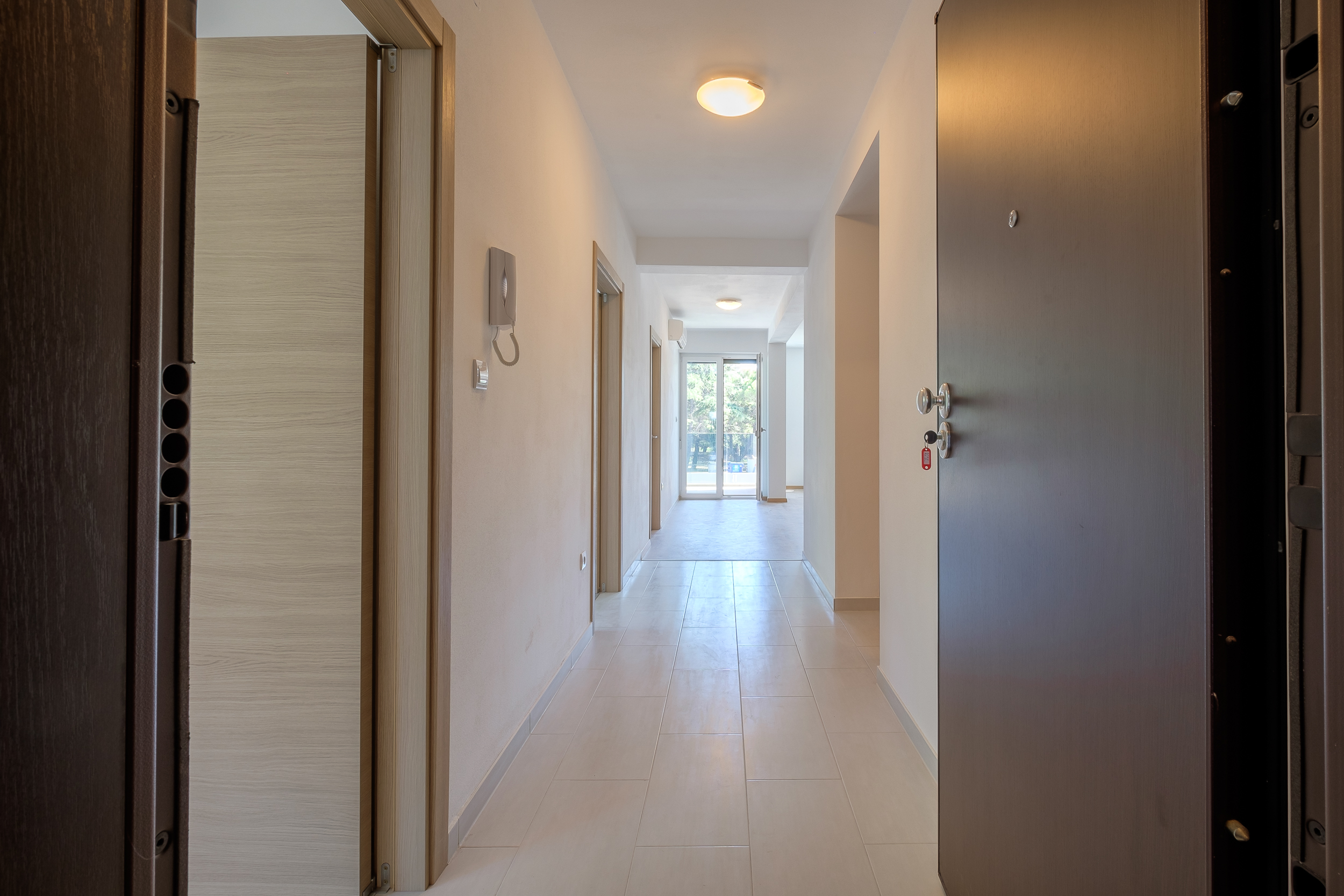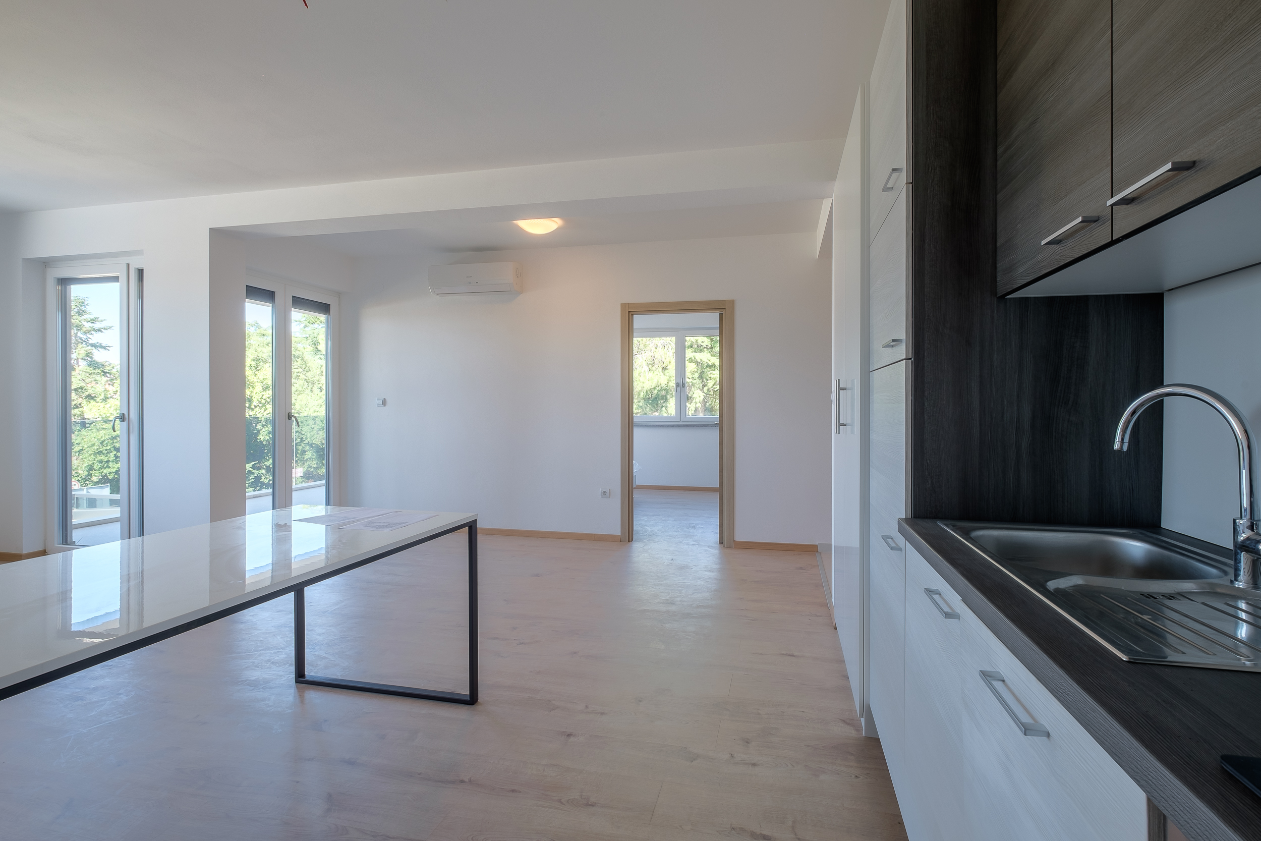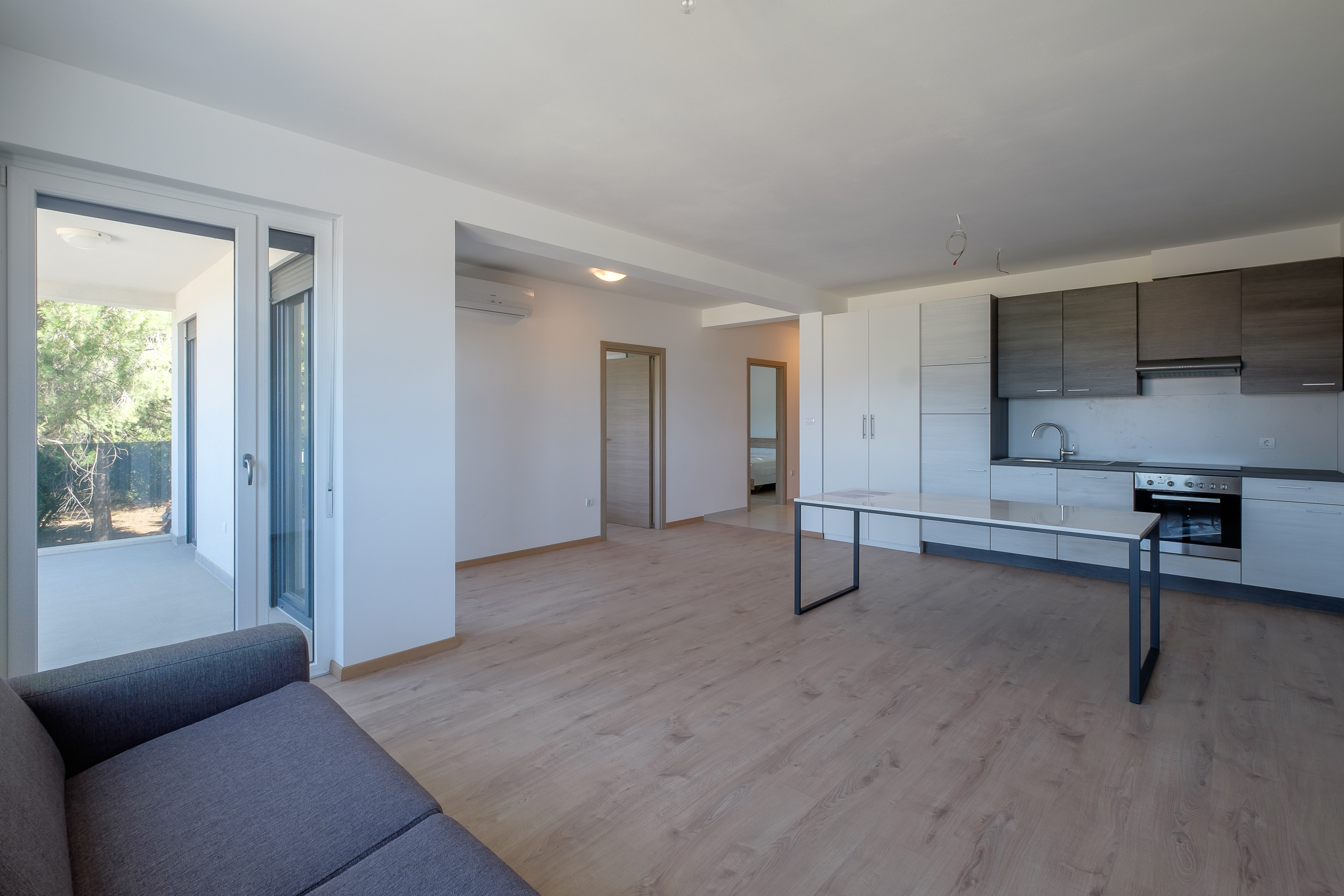 For sale is a new two-bedroom apartment in Medulin with sea view. Medulin has become a modern tourist destination, with its unique beaches, pleasant climate, environment, and various amenities that attracts numerous visitors every year. Spacious 91m2 apartment * is located on the first floor of a new residential building, on the Medulin waterfront, approx. 200 m from the sandy beaches. The apartment is located in a quiet environment, in a business-residential building and oriented to the west.