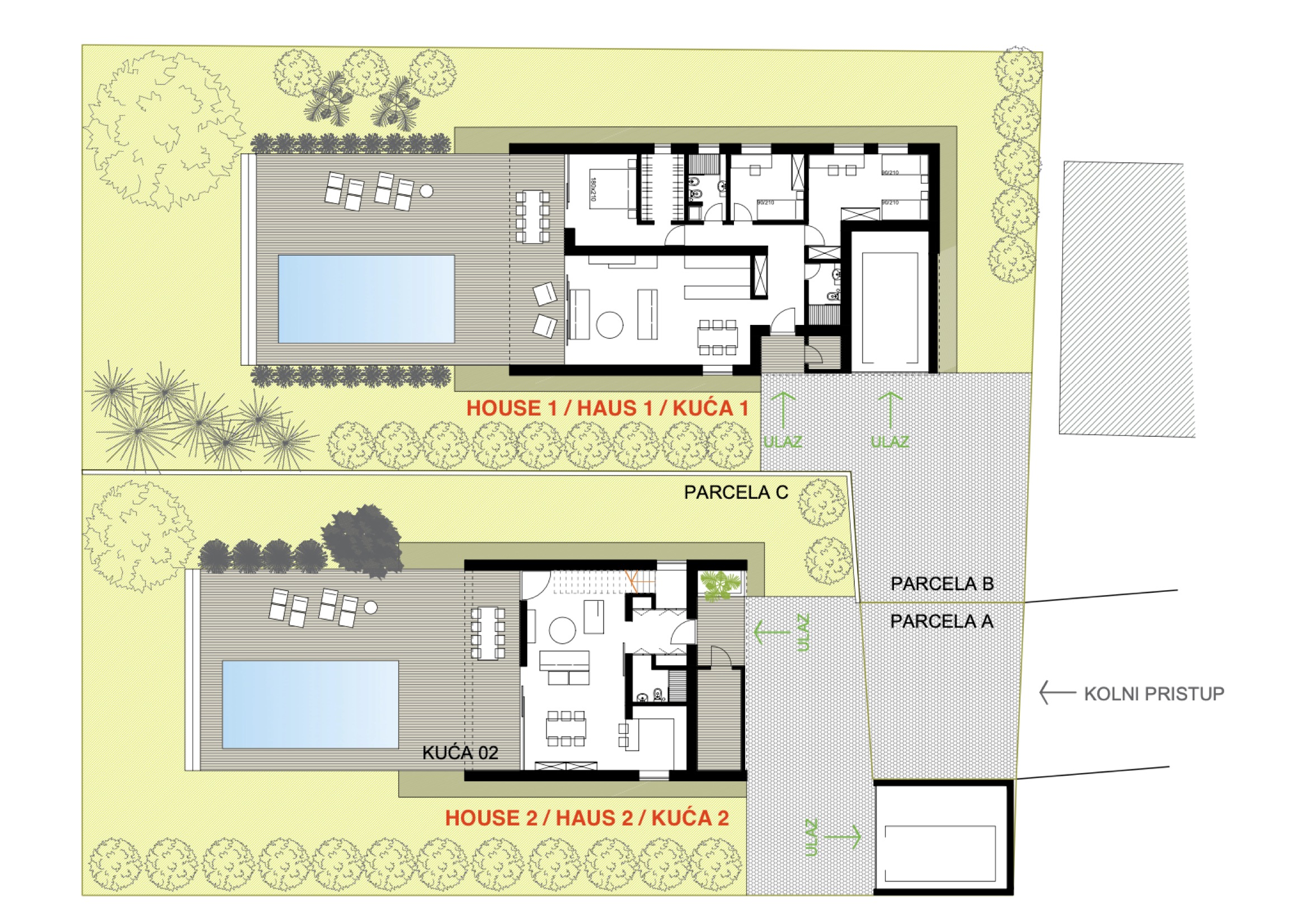 Hmm.. Zemljište Vam se čini ipak preveliko? Vjerujemo da ćete Vam sljedeća informacija vratiti osmjeh na lice - zemljište se može podijeliti na 2 dijela! Stoga možete kupiti jedno veliko zemljište ili jedno manje, kako Vama više odgovara!