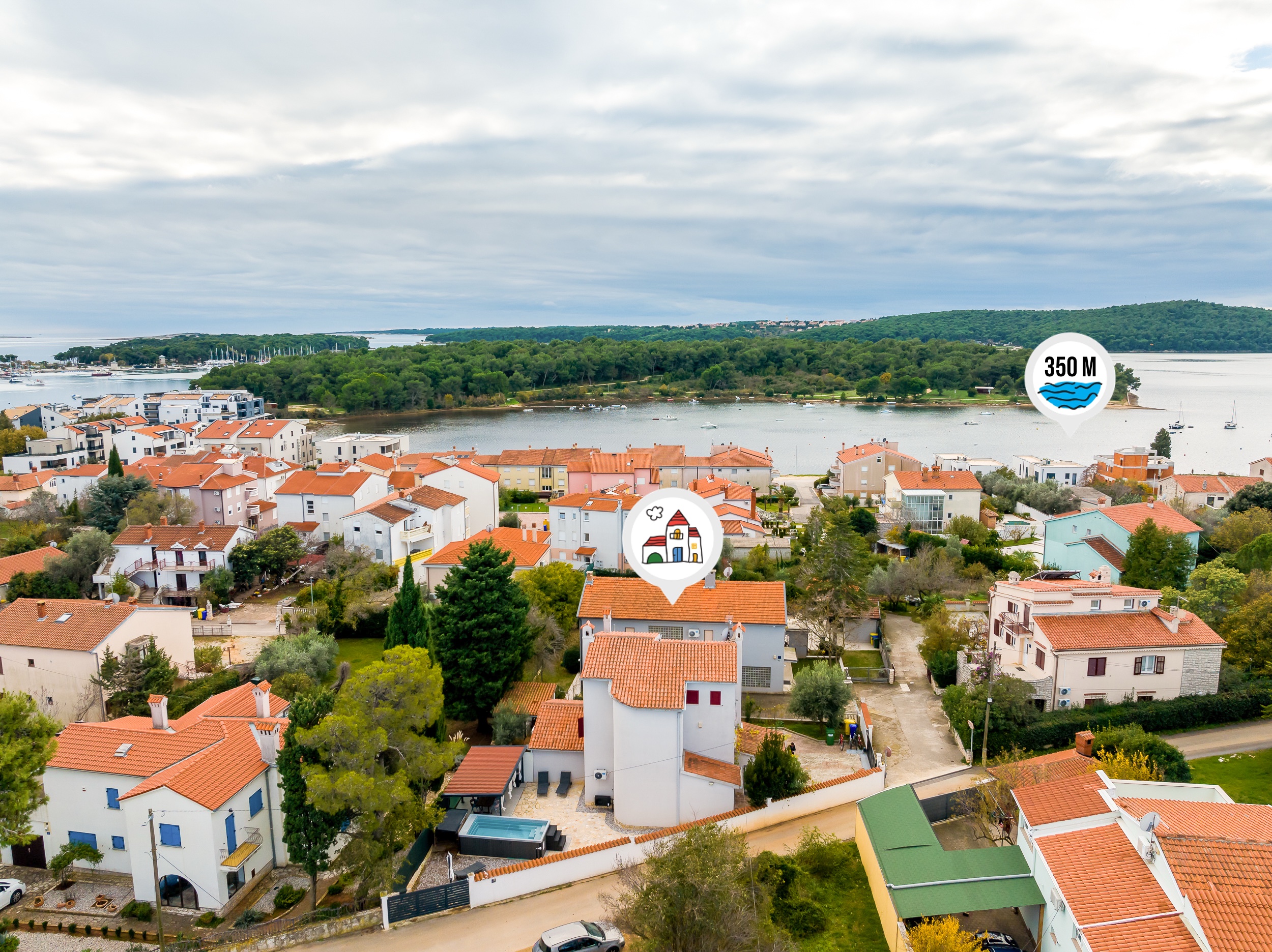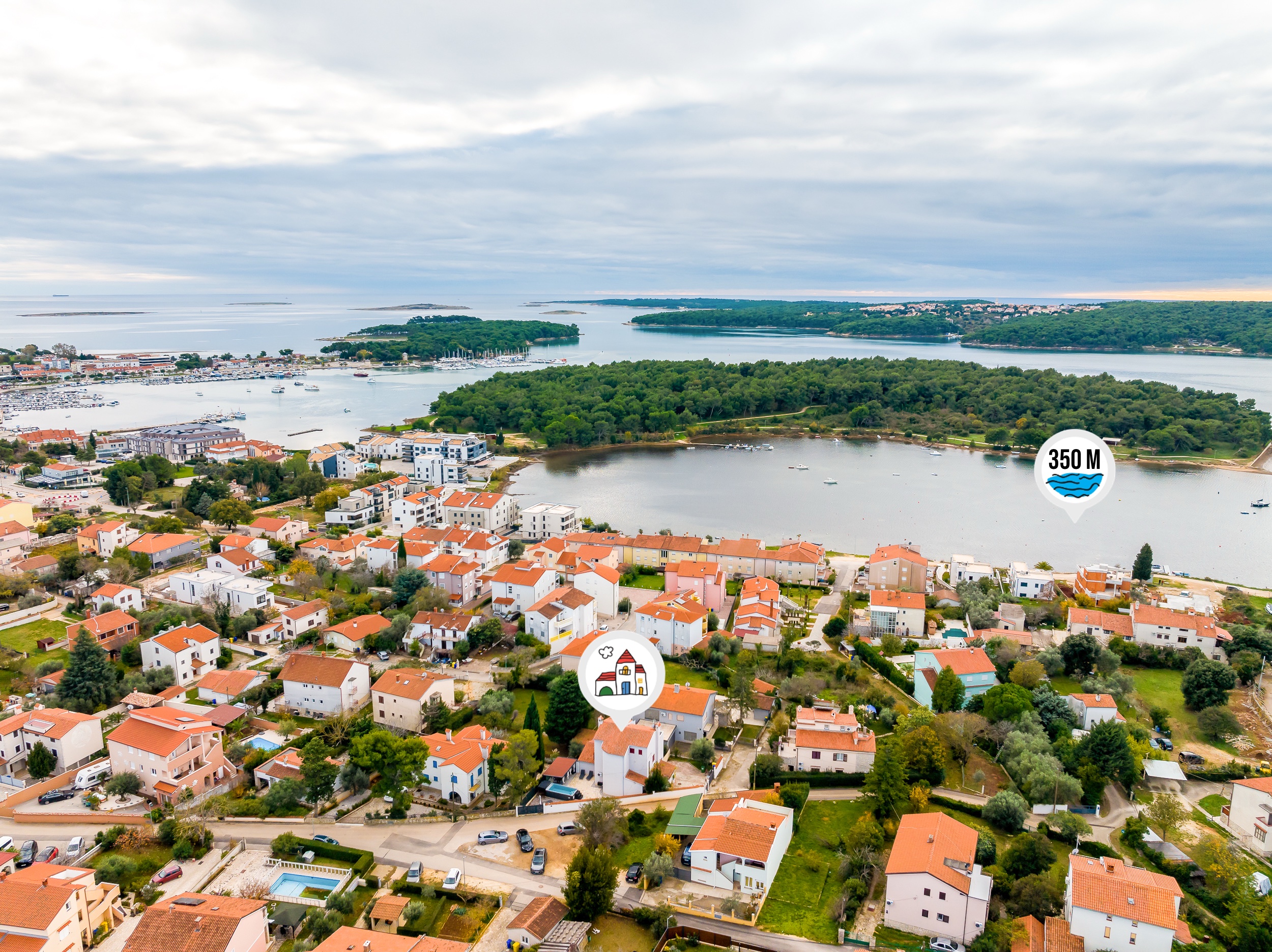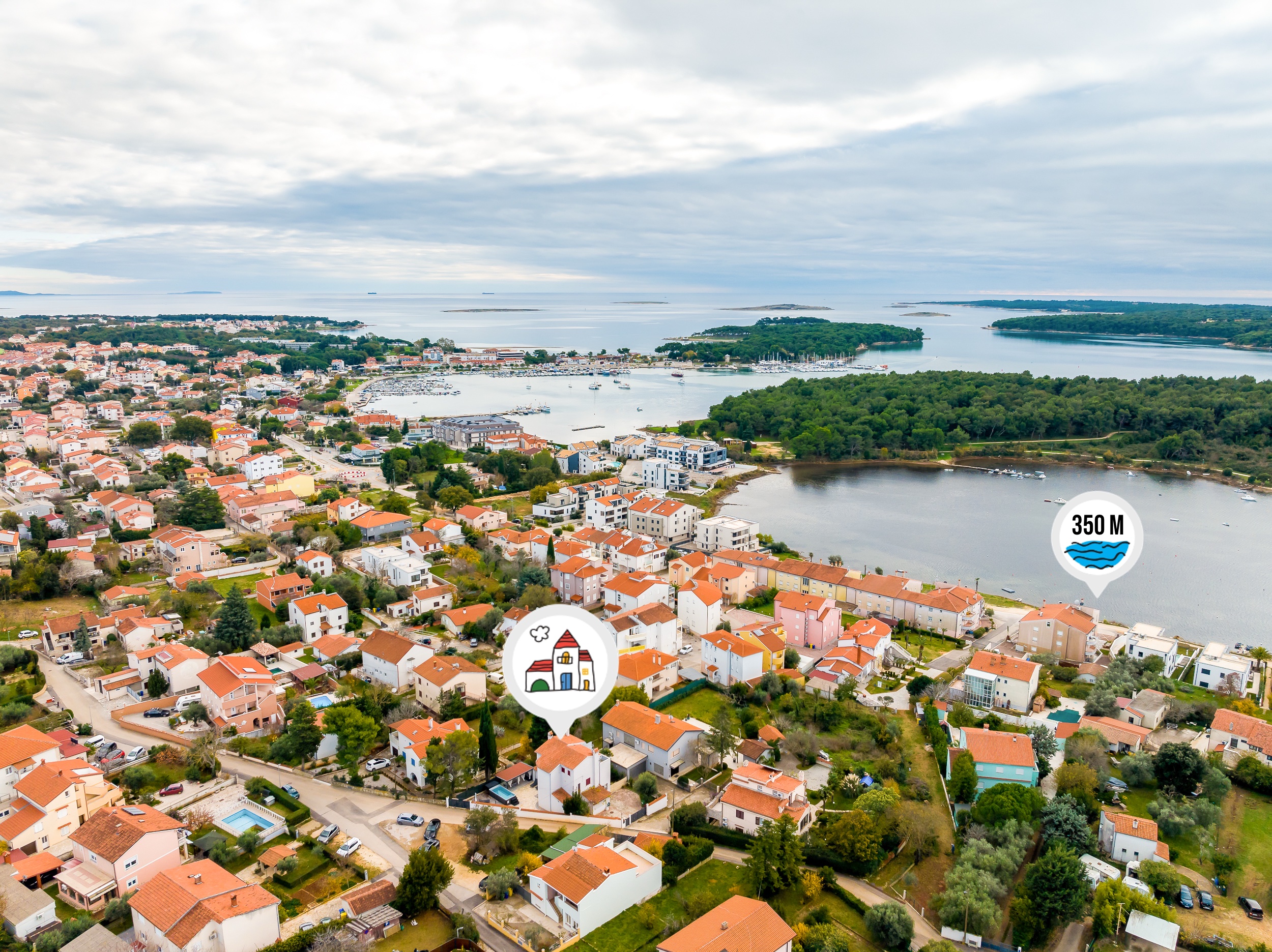 - Aerodrom Pula: 10.3 km (Google ruta)