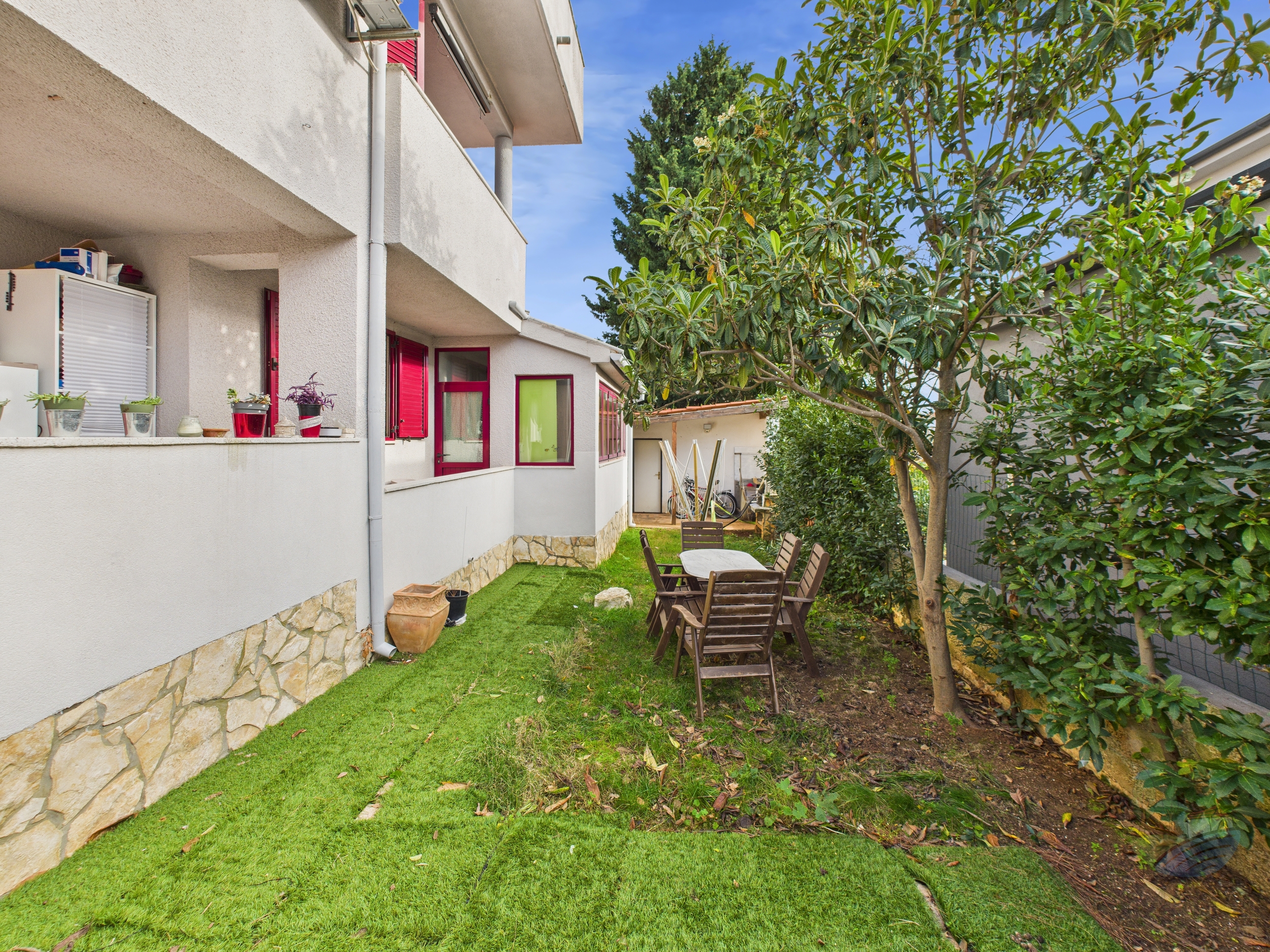 - Apartmana u prizemlju s dvije spavaće sobe i privatnim vrtom – idealno za stalni boravak ili starije osobe.