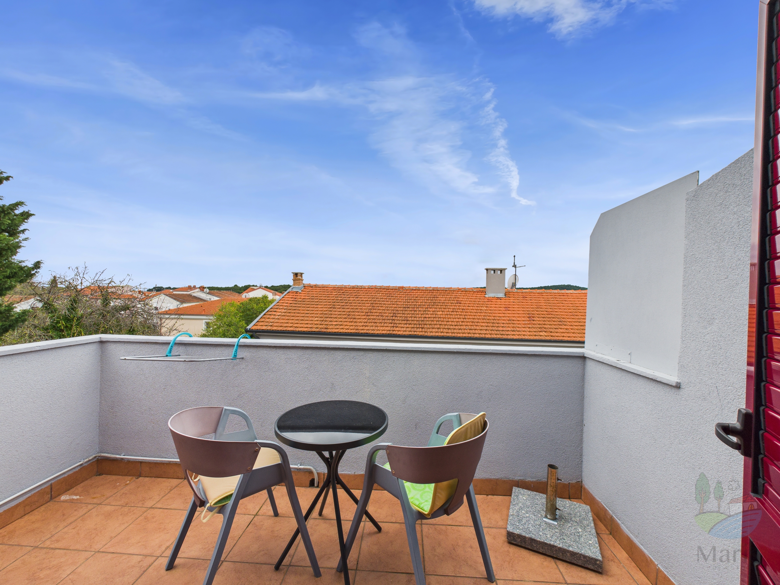 - Apartmana na prvom katu s dvije spavaće sobe i velikom terasom.