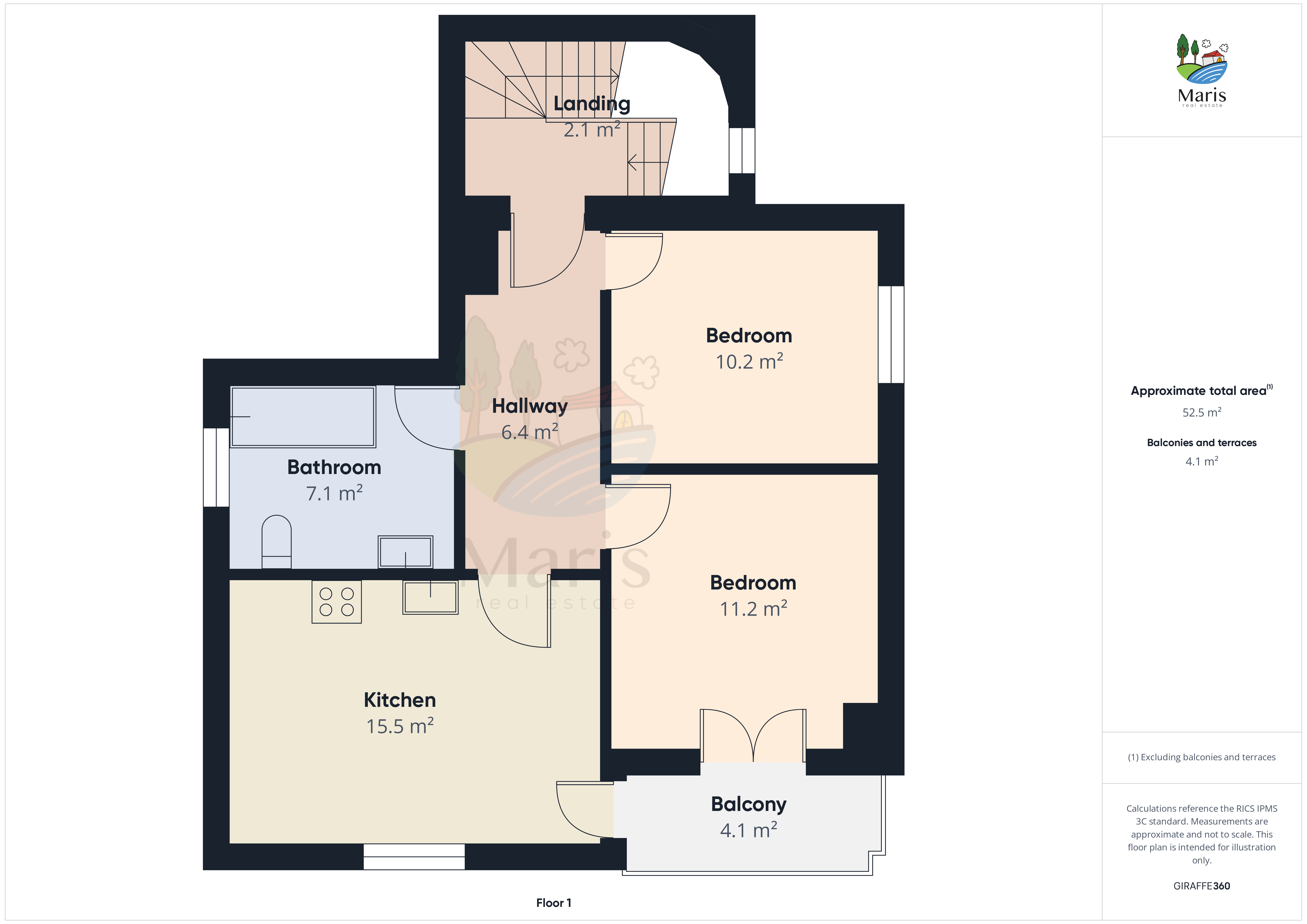 - 1. kat: ukupno 51,42 m2