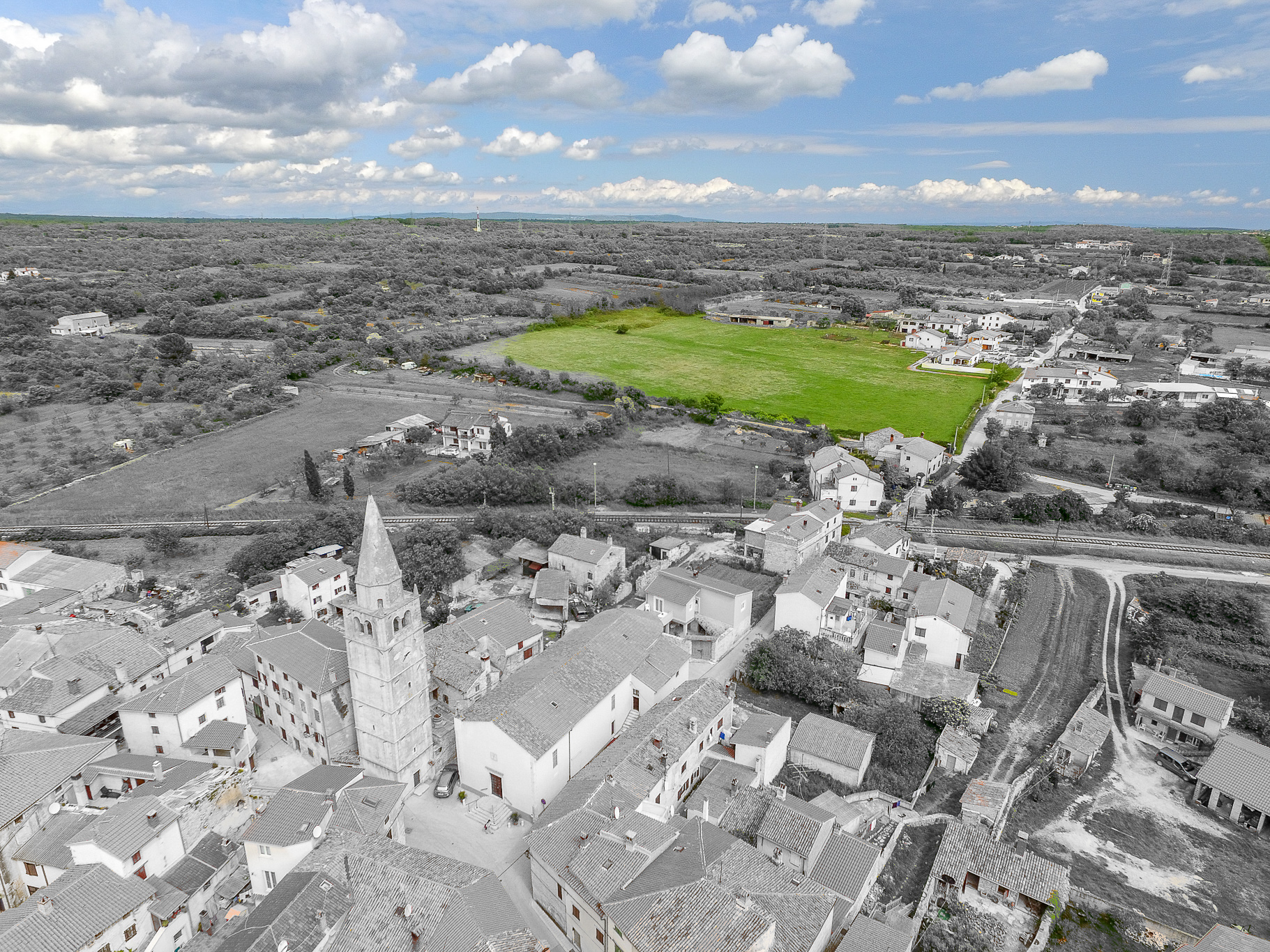 Parcela se nalazi u malenom istarskom mjestu Galižana, na vrlo mirnoj lokaciji, na samom kraju urbaniziranog područja, okužena maslenicima i šumom s pogledom na more sa prizemlja buduće nekretnine.