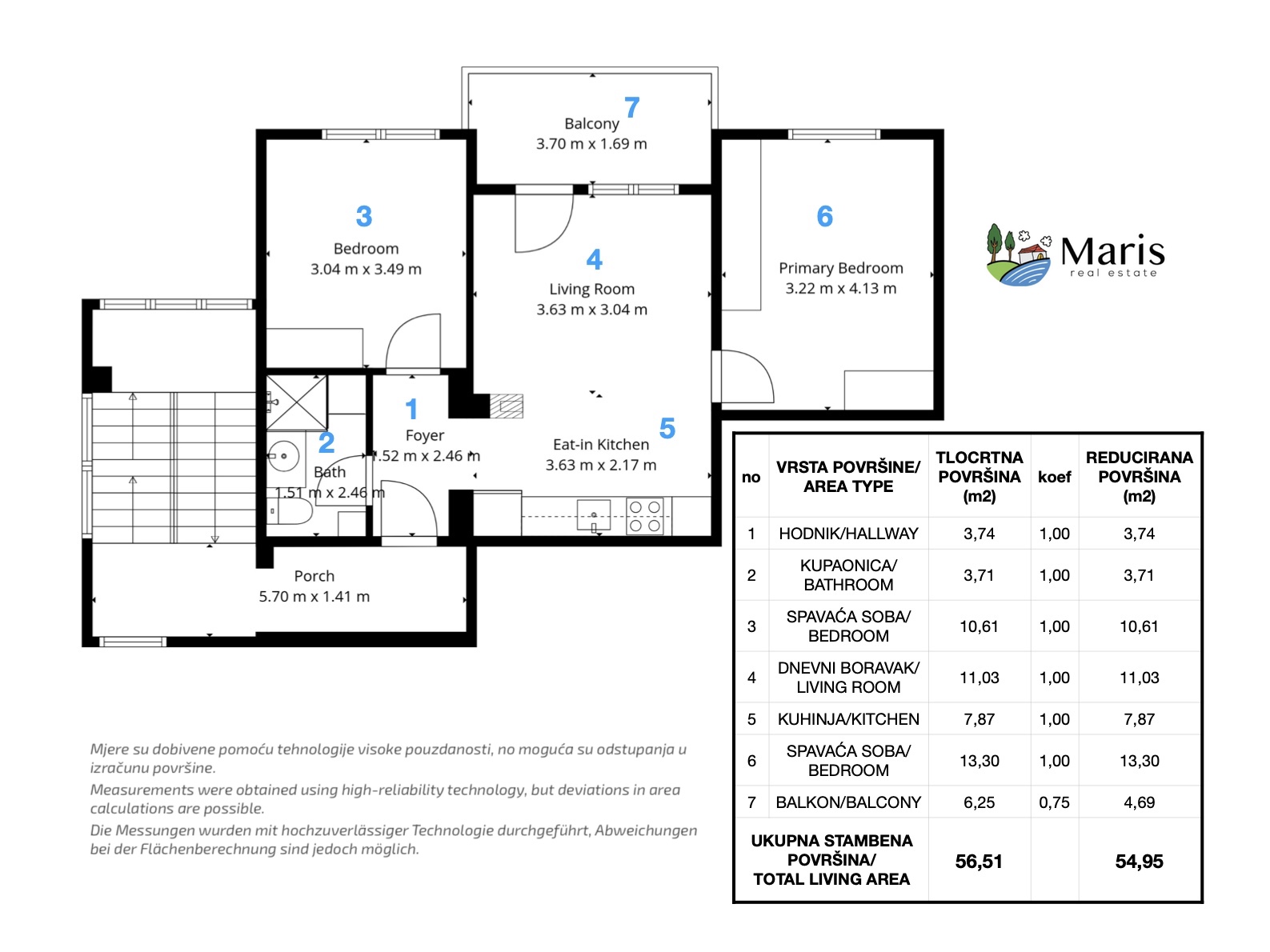 ● Superficie della planimetria dell'appartamento = 56,51 m²